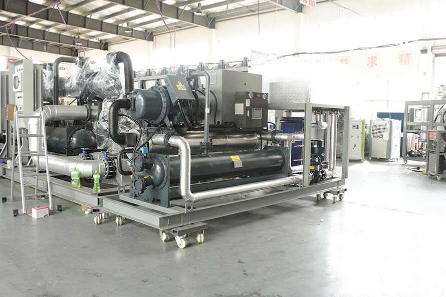 乙二醇工業制冷機組是以乙二醇為載冷劑的控溫設備,控溫范圍在-5度至-35度。
