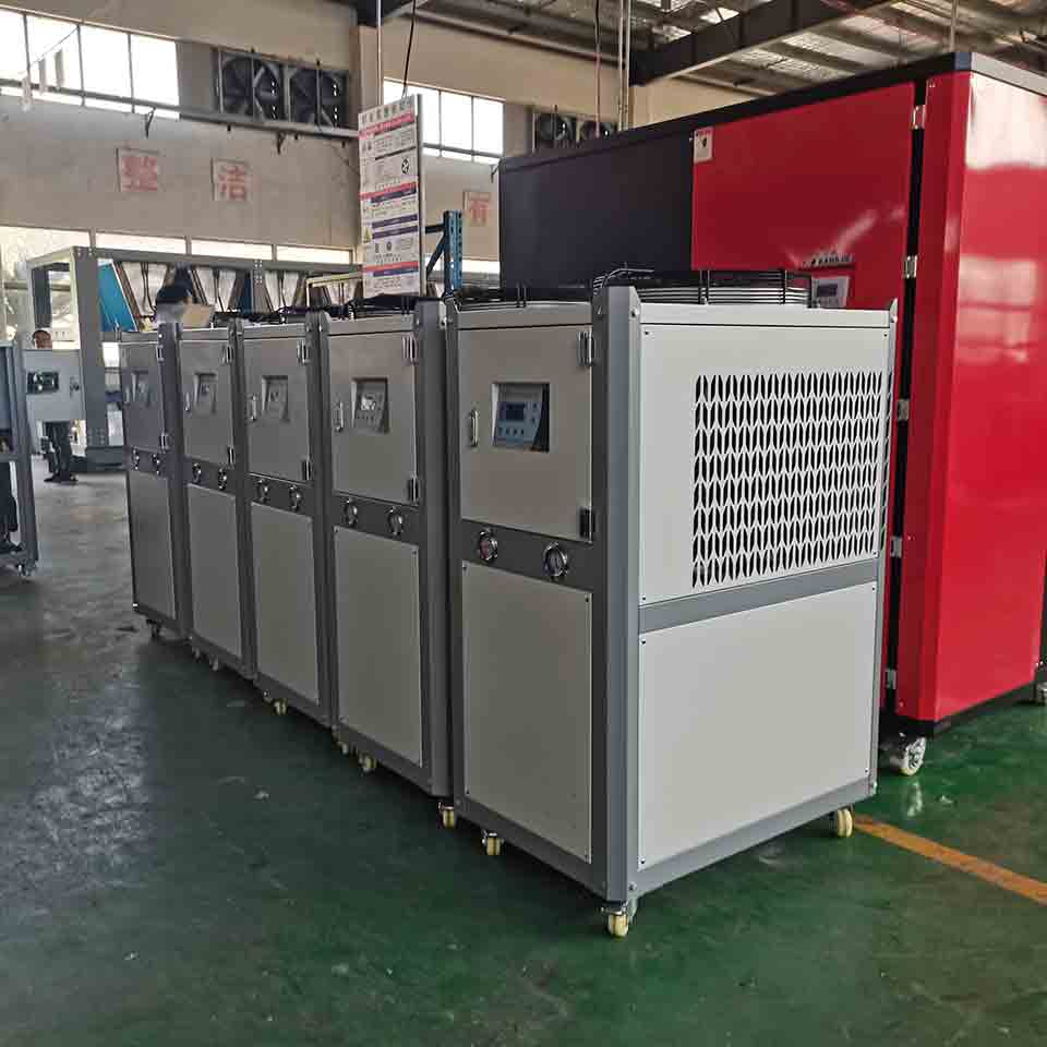 工業制冷機組是以壓縮機提供動力的溫度控制設備。根據冷卻方式分有風冷式、水冷式、蒸發式等。適用于工業或實驗等需要溫度控制的行業或工藝。