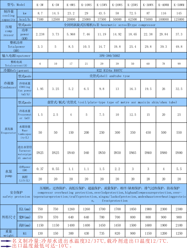 8.水冷及風冷式規格齊全(功率:3HP-300HP,制冷量從600W至34800W)專門設有適合各行業機械設備配套之機型,可按客戶工藝要求制造。