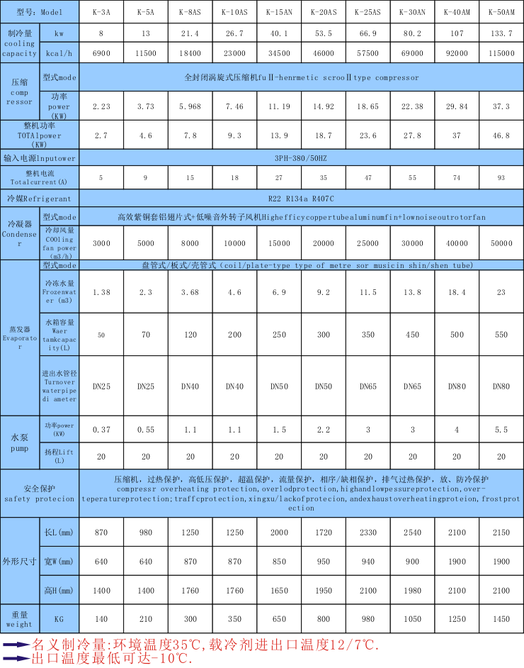 8.水冷及風冷式規(guī)格齊全(功率:3HP-300HP,制冷量從600W至34800W)專門設有適合各行業(yè)機械設備配套之機型,可按客戶工藝要求制造。