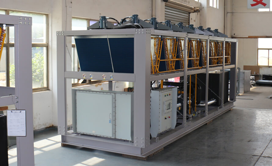 2.防爆型化工設備專用螺桿制冷機組:控制器根據 GB3836.1-2000 《爆炸性氣體環境用電氣設備 通用要求》、GB3836.2-2000《爆炸性氣體環境用電設備 隔爆型“ d ”》和 GB3836.3-2000《爆炸性氣體環境用電氣設備 增安型“ e ”》 的規定而設計制造。能夠滿足工藝的特殊要求;
